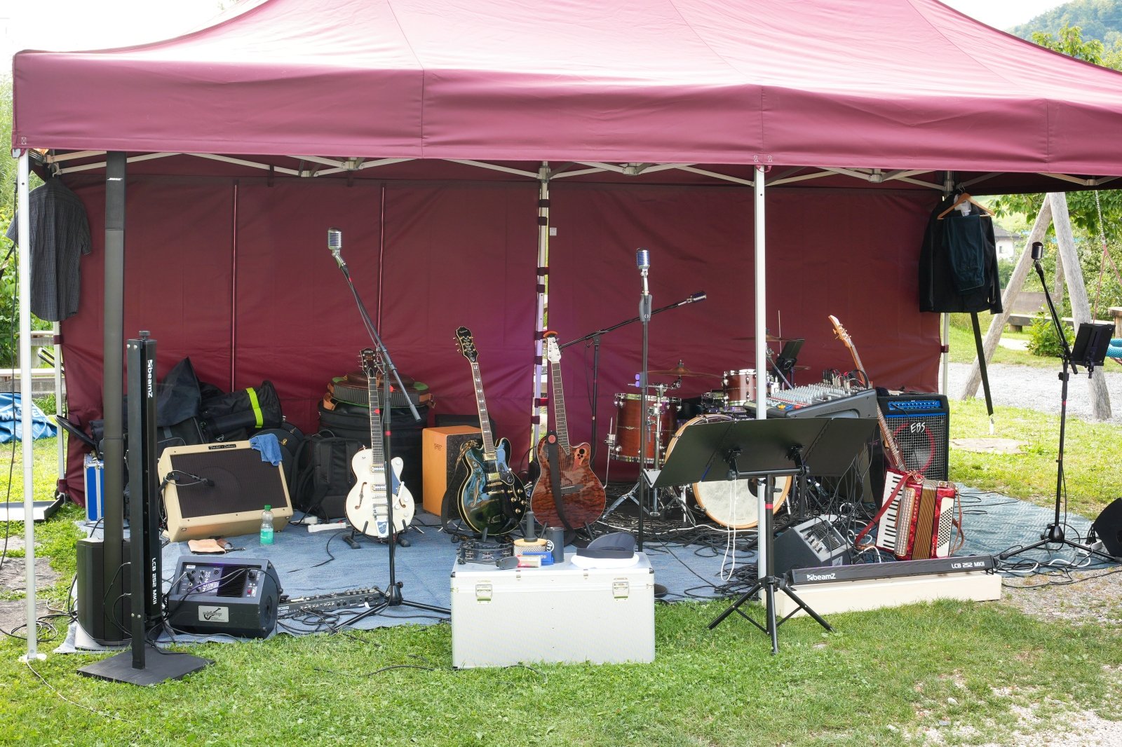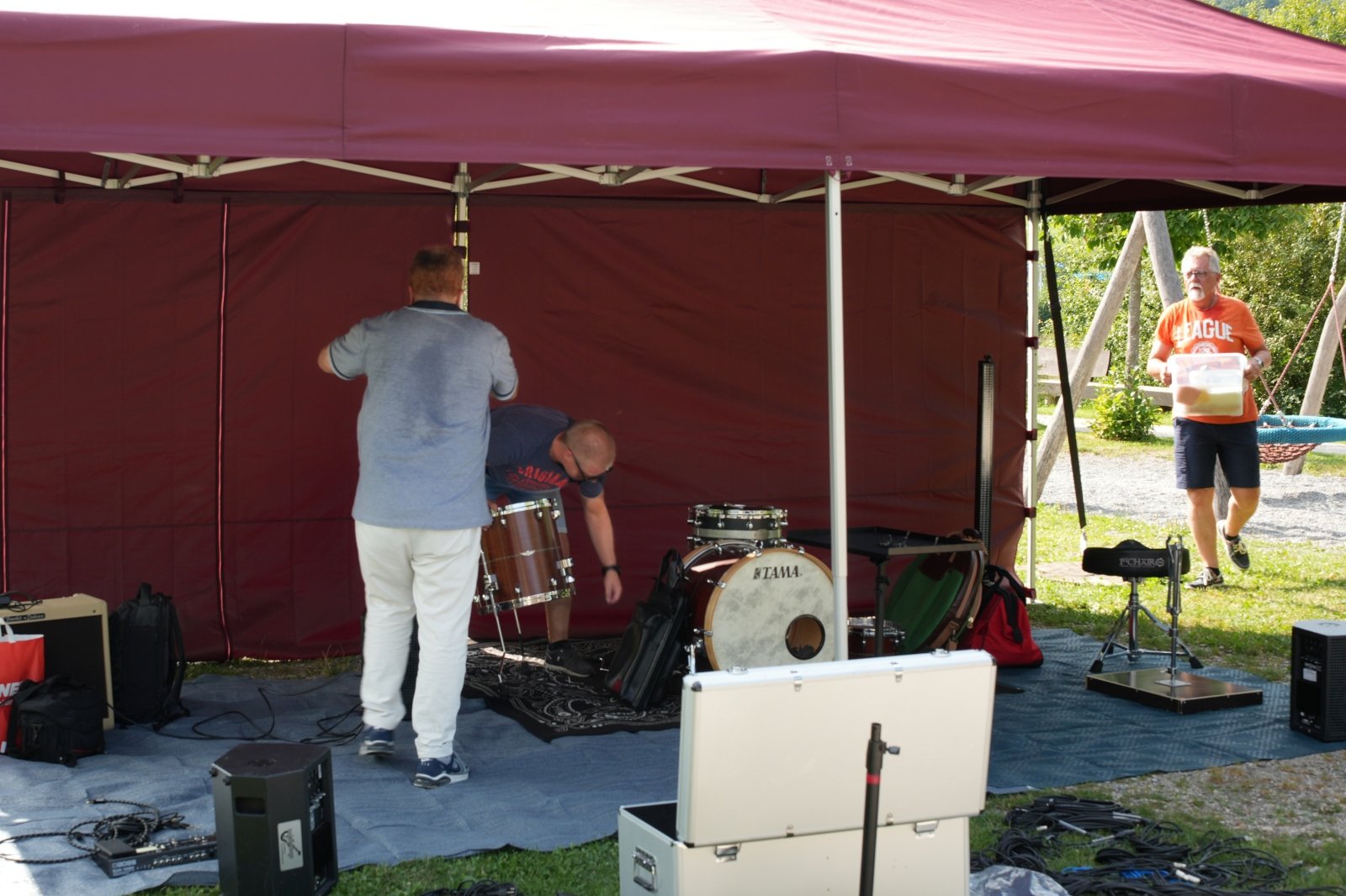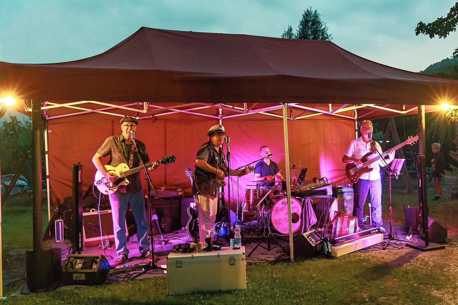 Bei sommerlichen, heissen Temperaturen begann am Nachmittag der Zeltaufbau. Pünktlich um 19 Uhr begann das Konzert vor einem begeisterten und wohlwollendem Publikum. Ein herrlicher Sommerabend,